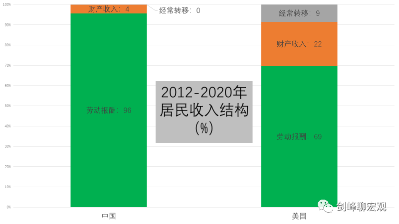 那么,如何提高居民收入占国民收入的比重呢?进一步观察中美居民收入的结构,可以发现问题的答案。中美关于居民收入的统计有所差异,但大体可以归于三项: