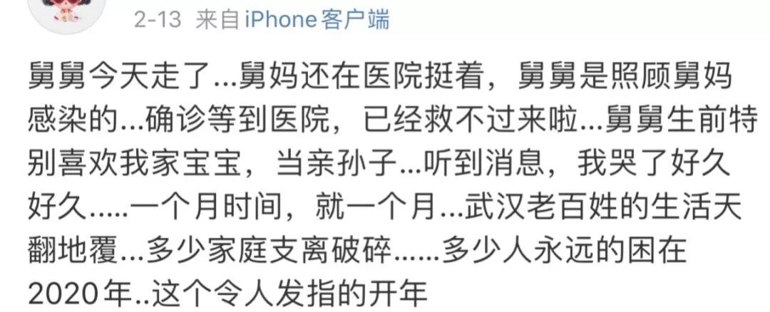 微博上有人发文,称舅妈感染,接着舅舅也感染,仓促离世......