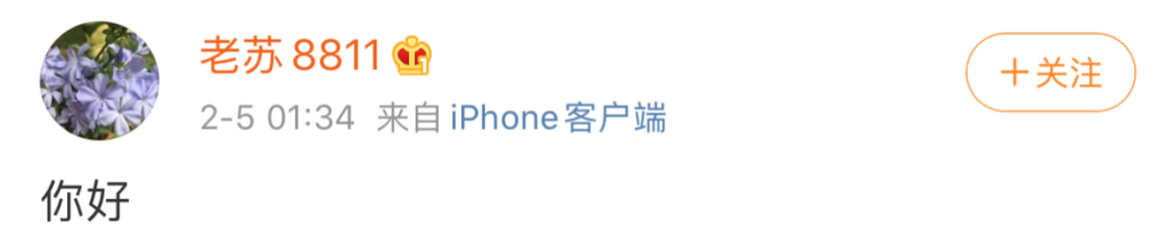 2月5日,他在微博摸索着发出的第一条,是笨拙又审慎的两个字:你好。