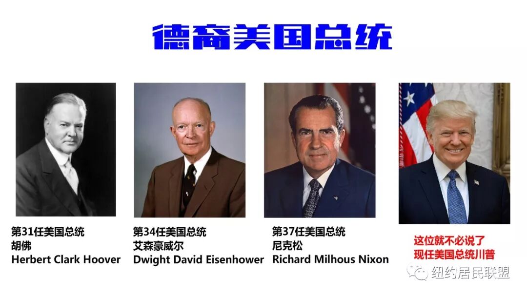 而现在为全世界所熟知的美国现任总统川普(Donald John Trump)也是个德裔美国人(德3代)