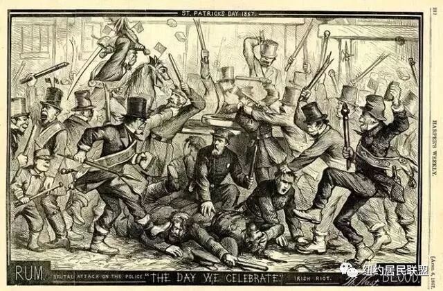 (表现爱尔兰人反抗警察的抹黑版画,但这也从侧面体现出爱尔兰人面对歧视坚决抗争的坚决与惨烈)