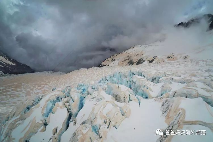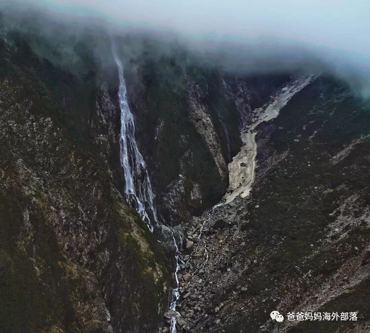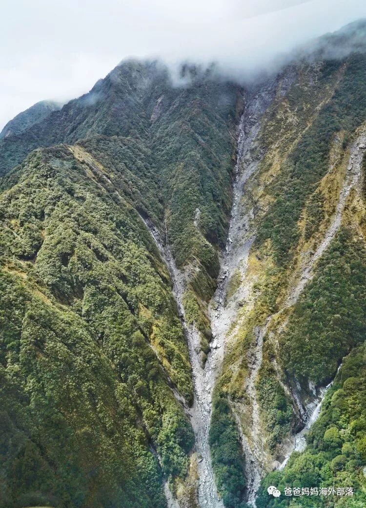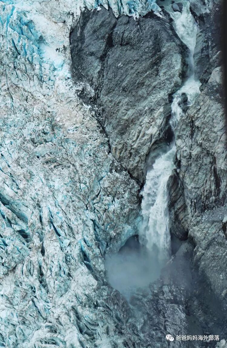 来新西兰一定要乘坐直升飞机看看冰川,飞机直接降落到高处的冰川之上。降落之前向下望去,福克斯冰川仿佛白色瀑布般从山顶泻流而下,非常壮观。