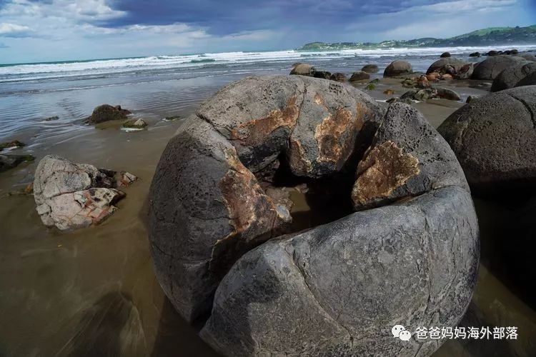摩拉基大圆石形成于6500万年前,50多个大小不一的灰色的岩石形似圆球散布在海滩上,最大的直径有两米多,重达数吨,据科学家研究是饱含会结晶的钙与碳酸盐微粒的海底沉积泥,一点一点慢慢形成了这些摩拉基大圆石,是泥浆结晶过程的产物。