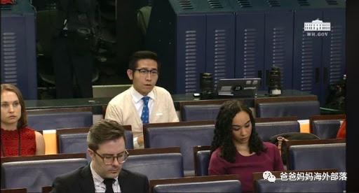 昨天,发布会来了位戴眼镜的华裔男记者,也坐最后,也获得提问权。川普又问:“你从哪来?”记者说:“我来自台湾”。“噢,很好。”川普表现出难得的友好。之后网络爆料说,华裔男是上海东方卫视的记者张经义。
