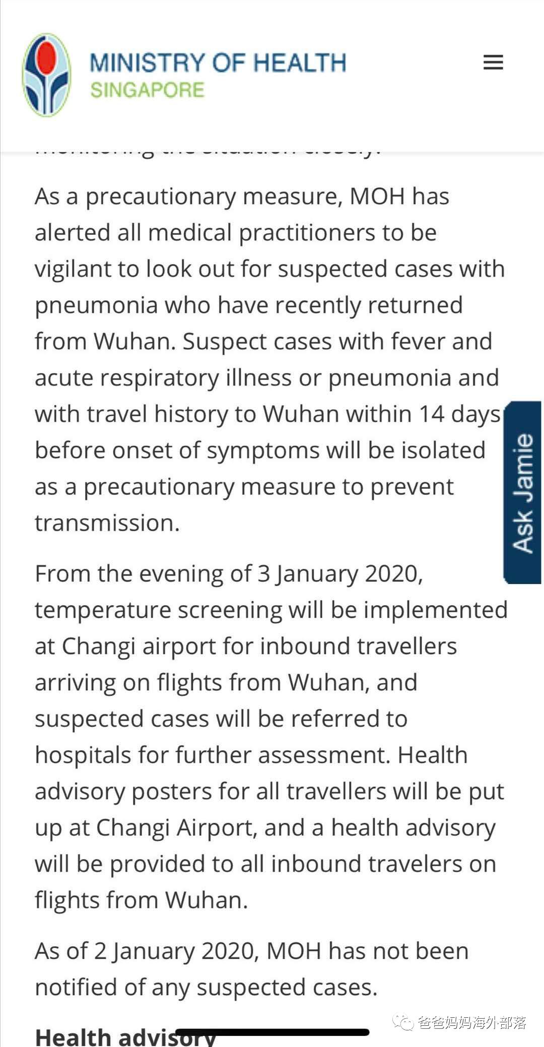 我记得,中国是在1月3日将疫情的信息通报了美国,看样也通知了新加坡。而新加坡马上采取了措施。