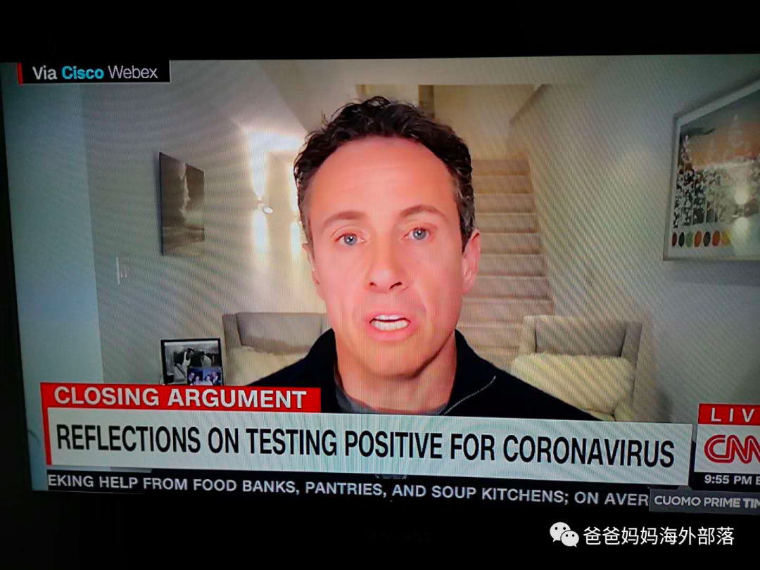 当晚,CNN的《库莫黄金时间》库莫轻伤不下火线,他对着镜头说:“我还好,只是有点发烧,还可以主持,我把直播室放在地下室,我想让大家看到病毒在我身上的演变。”
