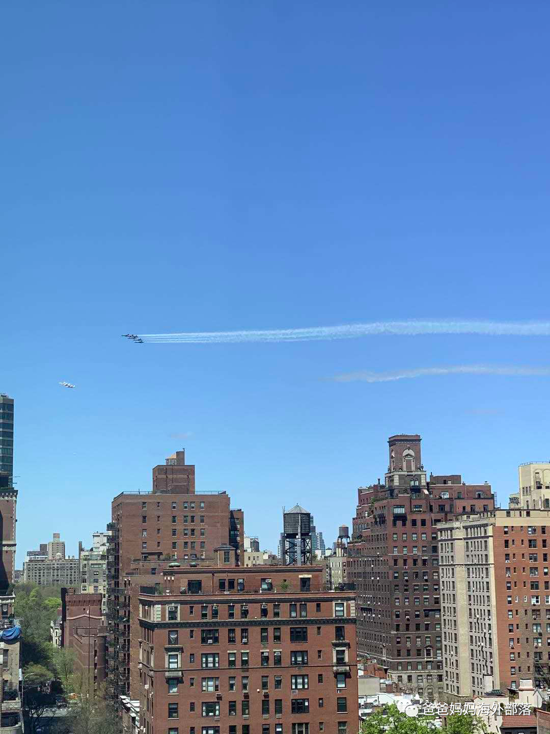 今天一早,纽约的好朋友Y 私信我一张照片:纽约上空12架F-18战斗机雄鹰展翅,威风凛凛。朋友还语音留言:“快看快看,电视里有直播。”