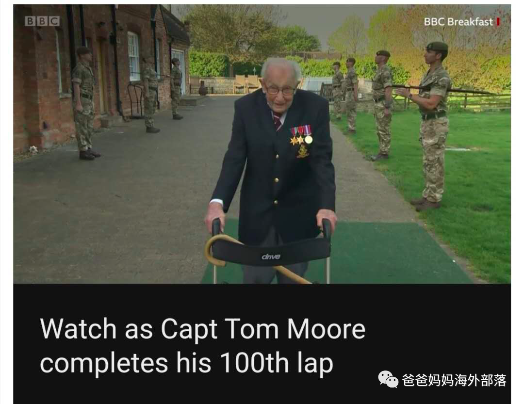 再过两天,英国皇家空军飞机也将有一场特殊的表演,这是献给二战老兵汤姆•摩尔(Tom Moore)上校的。99岁的老人摩尔绕自家花园步行100圈,他以一己之力为英国医护人员筹集了超过2900万英镑的善款,相当于5000万加元,2.5亿人民币!摩尔打破了“慈善步行个人筹款最多”以及“英国行动排行榜上最年长者”两项吉尼斯纪录。