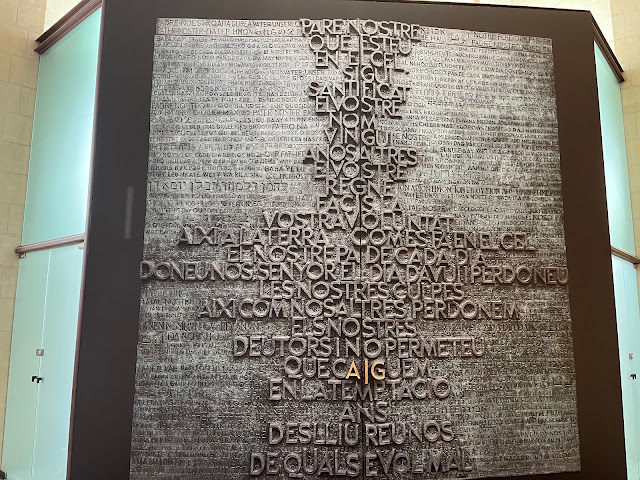 最后的晚餐,下面的石头上刻着约翰福音13:27「你所做的,快做吧!」,这原是耶稣在最后的晚餐上对即将要卖主的犹大说的话。苏比拉奇刻上这句话,还有一点反讽的意味,暗指这圣家堂实在是造得太慢了。