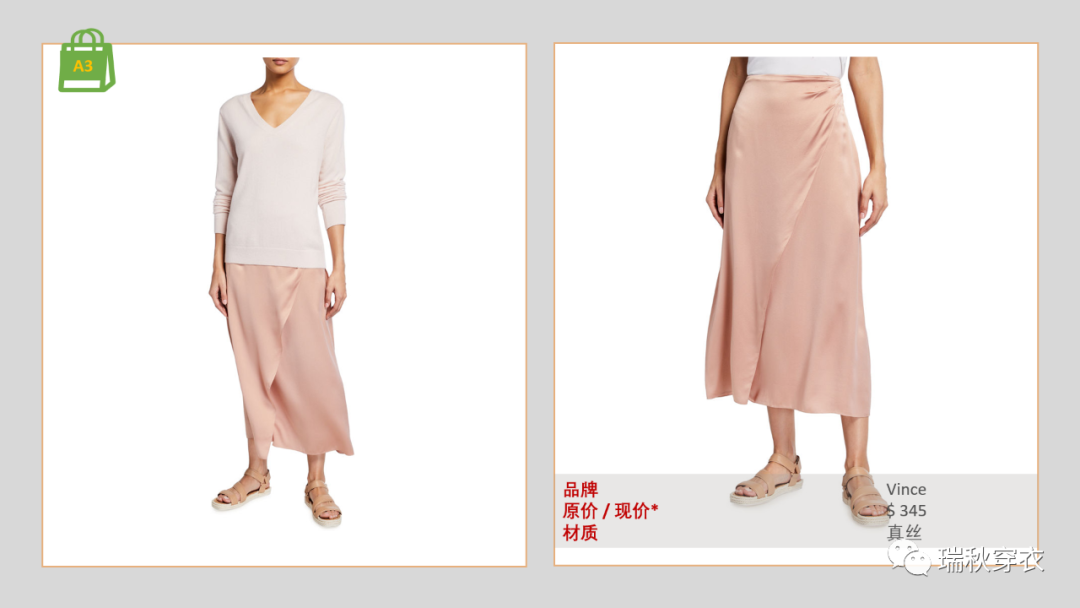我的裙子是Vince,但不是下面这款。我上面穿的裙子是松紧腰,四片拼接,左右都开叉。我在poshmark网上看到有卖同款,但对那个网站我不太敢随便推荐。下面这条是裹身裙。灰粉色很配黑白灰的外套,不比酒红差。