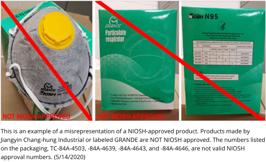 3、使用假的NIOSH口罩审批号,例如TC-84A-4503, -84A-4639, -84A-4643, and -84A-4646。