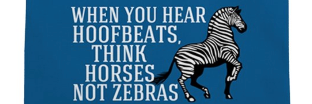 言下之意是:在临床诊断方面,我们要首先考虑常见病,常见并发症,而不是一上来就考虑罕见病。这句话经常出现在医学生的临床教学上,因为医学生刚刚上临床时,往往一下子就会把一些罕见病的诊断套在具体的病人上,如果是按照这种思路,可能会造成很多不必要的检查和医疗资源的浪费,给病人带来沉重的心里压力,同时还把自己吓坏了。