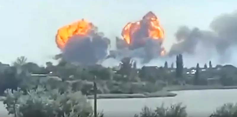 8月9日,克里米亚俄罗斯空军基地发生爆炸,据一些社交媒体说,至少听到了12次不同强度的爆炸,现场笼罩在火焰浓烟中。俄军至少损失了八架苏30及直升机,弹药库也被摧毁。