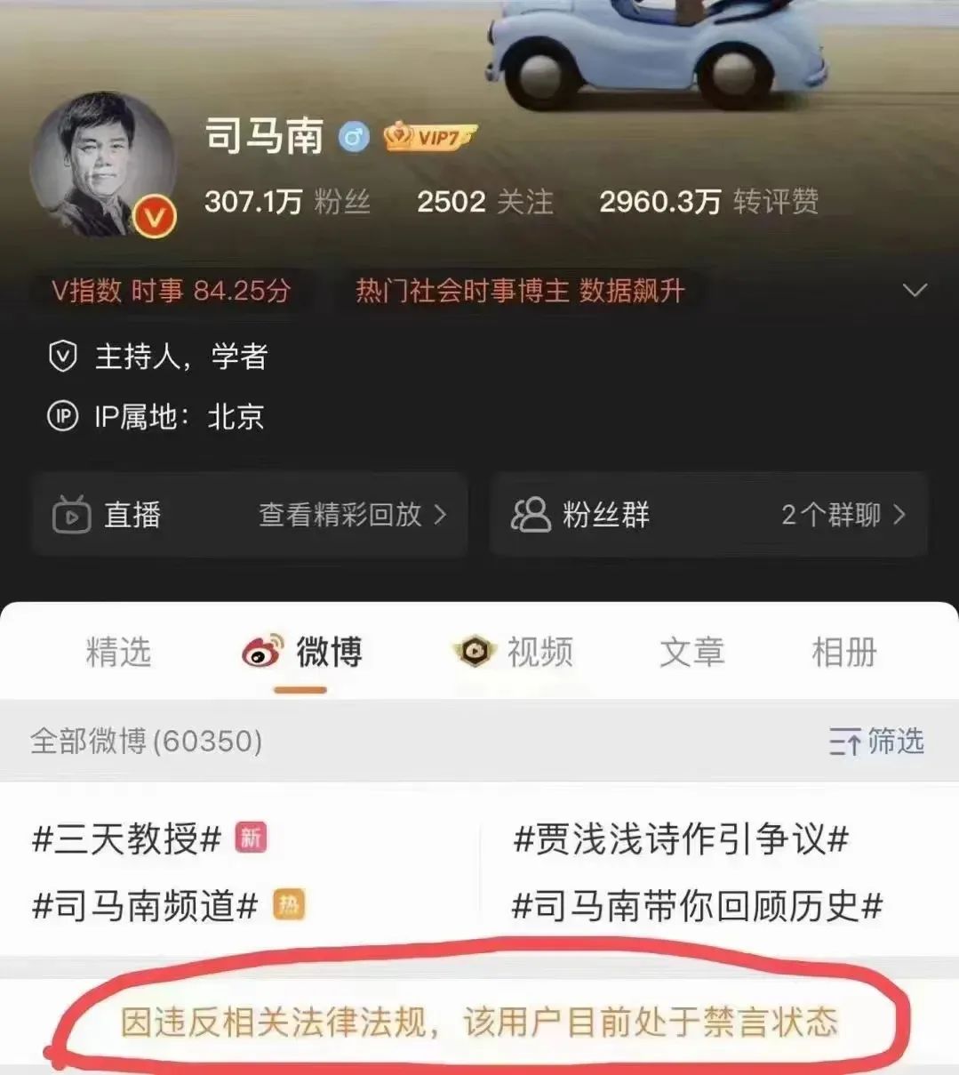 德高望重的人死后才有“哀荣”一说,司马南肉身尚健在,但不妨碍网民把他微博抖音头条禁言当“喜丧”来庆祝,丧讯传出,广大网民喜大普奔锣鼓喧天,热烈欢呼司马南的局部死亡——信口雌黄是他的主要生命体征,被封了排泄渠道,可不就接近局部猝死嘛。司马南活生生地眼看着自己“备极哀荣”,想必会“喜极而泣”吧?遥想司马南整体臊消石殒时,会引发多大的面积的欢庆,也是醉了。他活着让人恶心,消失了却给人们带来快乐,多么奇怪的生物呀!他最大的缺点就是太磨叽,不肯消失得早一点,大家盼着司马南“消失要趁早呀,走得太磨叽,群众的快乐也不那么痛快”。
