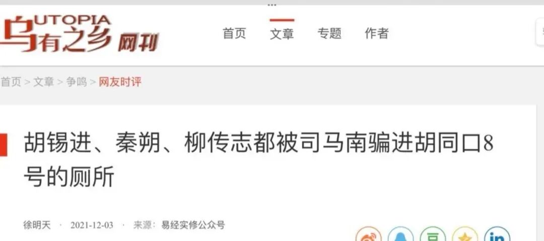 我觉着,司马南这次“阵亡”,老胡的嫌疑最大。他俩貌似同一阵营里的战友,但司马南最近风头太健,隐隐有取代老胡头把交椅之势。在一般网友看来他俩做的都是丢人的买卖,但就算是青楼里做皮肉生意也竞争激烈,小姐们为争当头牌,明争暗斗的惨烈程度不亚于宫斗戏。一山不容二虎,爱国市场也严重内卷,由分散走向垄断是必然的,老胡品牌受到夹头品牌的挑战,市场份额被夹头品牌逐步蚕食。那么,最想让夹头消声的会是谁?夹头音道被锁喉,他麾下几千万无主粉丝最适合被老胡收编。小孩子才讲道理,成年人只看效益。司马南“阵亡”谁的收益最大,谁就最可能是刺客。从技术流派角度看,司马南最大的练门是“夹头”,头被夹的后果是变形,变成扁平的盘型;而老胡的绝活是叼盘,说夹头被老胡叼走了,也合乎双方的武功特征吧。
