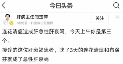 当年清河县药铺若经营连花清瘟,潘金莲就不用给武大郎灌砒霜了,大剂量的连花清瘟灌起,武大朗的肝脏一命呜呼,武松回家都无从闹起。下毒不必用猛药,慢药下毒才见真功夫,宋江征讨方腊取得官位后,才有被下慢药毒死的待遇。全国人民咕嘟咕嘟喝无防疫疗效的连花清瘟,神州遍地武大郎呀。连花清瘟背后有个西门庆/潘金莲联盟?“连”指金莲,“清”是庆?