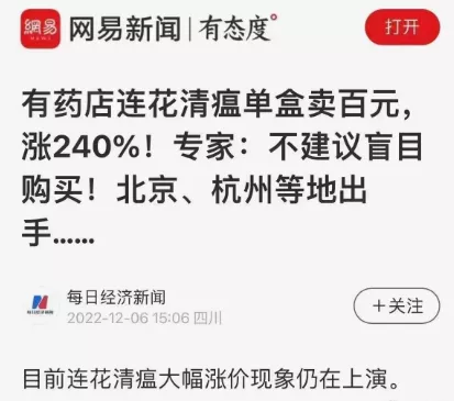 三年防疫,连花清瘟没证明有任何疗效,却一直当灵丹妙药发放。最近防疫措施调整,有序解除封控,而连花清瘟却继续发威,多次加价也抢售一空。一种早已证明对疫情无效的药物一再干扰防疫,该当何罪?这让远古时代的巫师们羡慕嫉妒恨,只能仰天长啸:作法不灵也能继续骗吃骗喝,而且还特么的鼎食钟鸣,尽显王者荣耀,咱咋没摊上这么好的时代?只有好处而无责任,连巫术都不带这么玩的。咱不能让巫师看笑话,这已经不是医学问题了,而是严肃的法律问题——司法部门对连花清瘟集团立案侦查,刻不容缓。