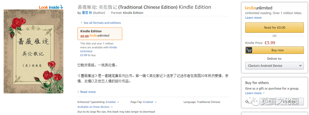 诚邀读者们在亚马逊上给此书评分和写评论,以及写读后感投稿“英国文化园”,也希望喜欢此书的读者不吝转发本文,并推荐此书给喜爱文学作品和喜欢鉴赏异域文化的朋友。
