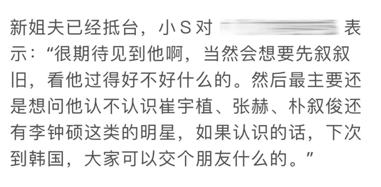 随后,大S工作室直接在微博上以大S的口吻带着男方的文案,在3.8妇女节高调宣布了这个消息。