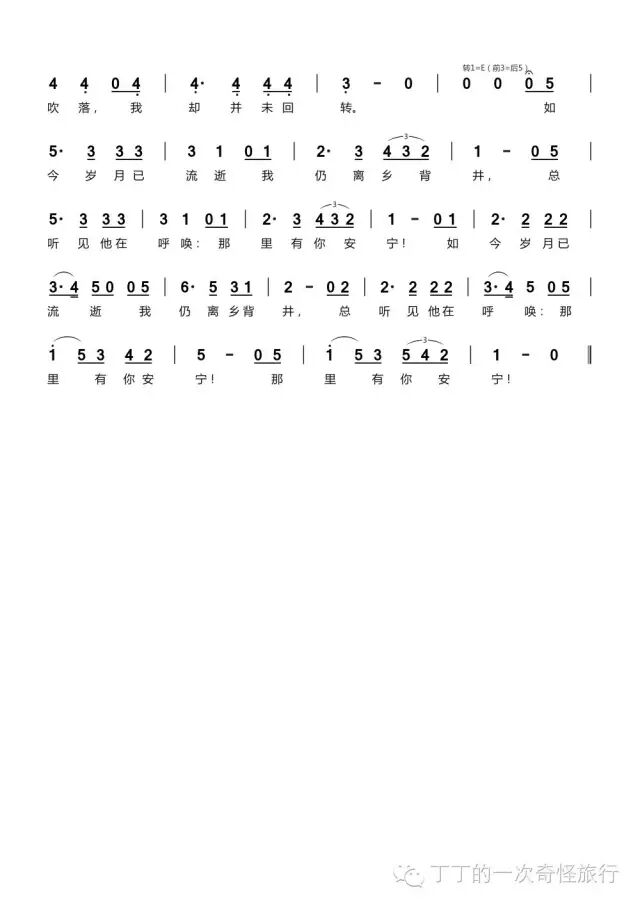 不过,我们要是想了解歌曲真实的原貌,还是得听一听费舍尔.迪斯考的原汁原味的演绎,他忠实了原作的色彩及调式变化 — 诗歌共分为6段:前两段为E大调,甜美而舒缓的回忆;第3段转入了E小调,忧伤而凄楚的倾诉;第4段又回到了E大调,在椴树的呼唤声中暂时闭目沉浸在起少年时代的安宁里;第5段在原歌的五线谱上并没有显示转调,但是我为了那些半音演唱起来方便,还是在简谱里把它转变为E小调,它的色彩是冰冷而严酷;然后在一切的黑暗和痛苦暂时停歇之后,第六段又缓缓地回到了E大调,童年那棵村头的老树(见鬼,我最近没完没了地和“老树”这个词打交道),又在天边发出他温暖而柔和的呼唤,呼唤游子回归那古老而甜美的安宁。