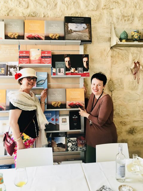 我们初识于七年前的那个十一天西西里小团旅。那次旅行中,我们连着三次活动都有机会与她相遇,参观传统橄榄油作坊、在酒庄的葡萄园间享用午餐、最后一天在她家的餐厅共进晚餐。那时我才知道,餐厅的书架上整齐摆放着几本她的著作,才知道她原来是一位美食作家与专业美食记者,还曾为美国《Saveur》杂志撰稿。她的代表作《味觉与传统》(Taste & Tradition)记录了意大利南北的饮食文化,甚至还有英文版!