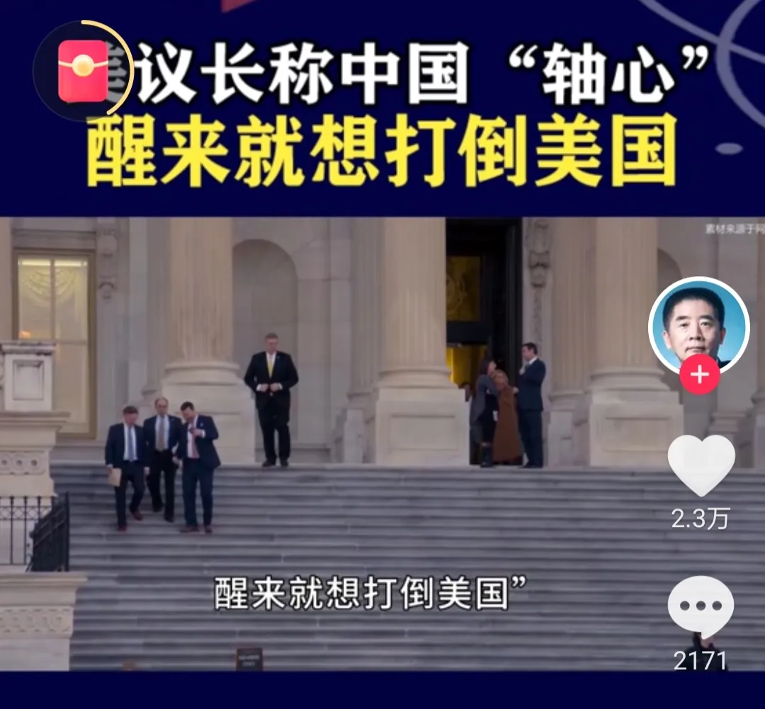 https://mp.weixin.qq.com/s/AgYO7W77SE9UtOg2V8BvsQ美国竟把中国定义为邪恶轴心国近日,美国众议院的一系列言论和举动引发国际社会广泛关注与震惊。美国众议院议长等部分美方政客,公然将中国定义为所谓的“邪恶轴心国”,并毫无依据地指责中国领导一个由俄罗斯、伊朗、朝鲜、委内瑞拉和古巴等国家组成的“邪恶轴心”,对美国构成严重威胁。当地时间7月8日,美国众[