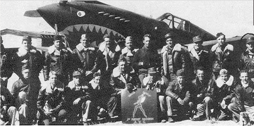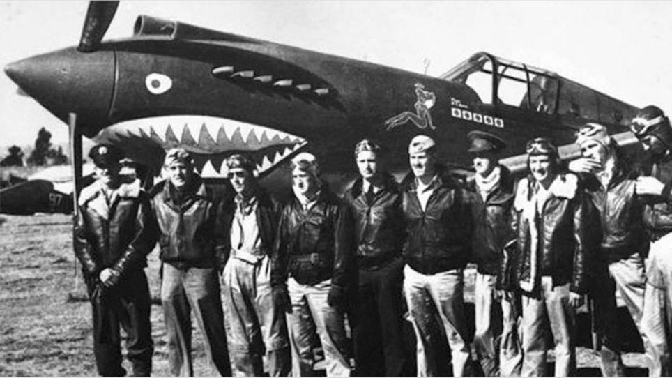 美国飞虎队员在昆明合影留念。“飞虎队”的创始人是美国飞行教官克莱尔·李·陈纳德。陈纳德生于1893年9月6日,是美国得克萨斯州人,拥有出色的飞行技术。应国民党政府邀请,1937年7月初,陈纳德抵达中国考察空军,担任中国空军顾问。考察快结束之时,中日战争全面爆发。陈纳德接受宋美龄的建议,在昆明市郊组建航空学校,以美军标准训练中国空军,为中国空军培养了很多优秀人才。