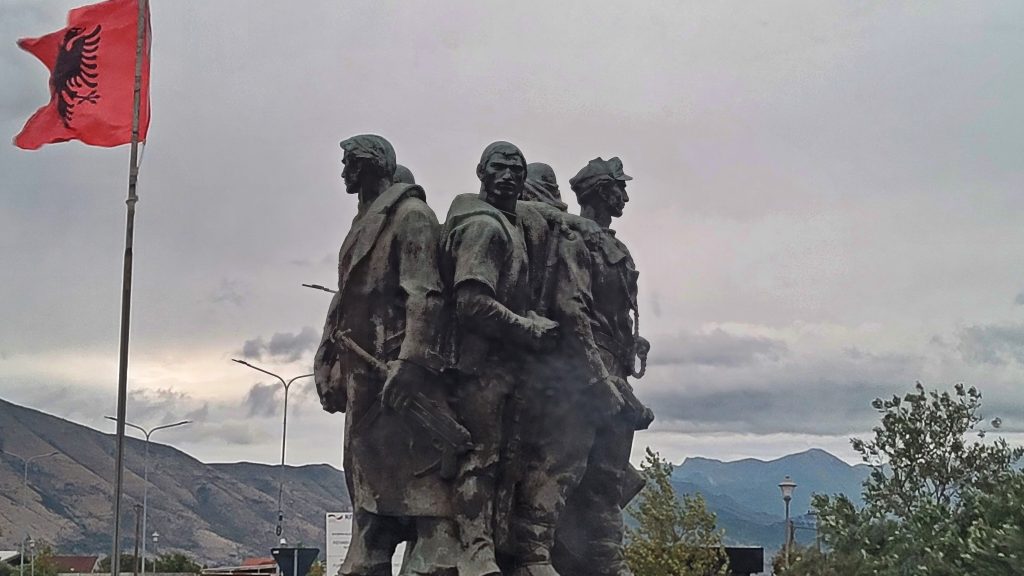 斯库台五民族英雄纪念碑,为纪念二战中牺牲的五名游击队员而建。