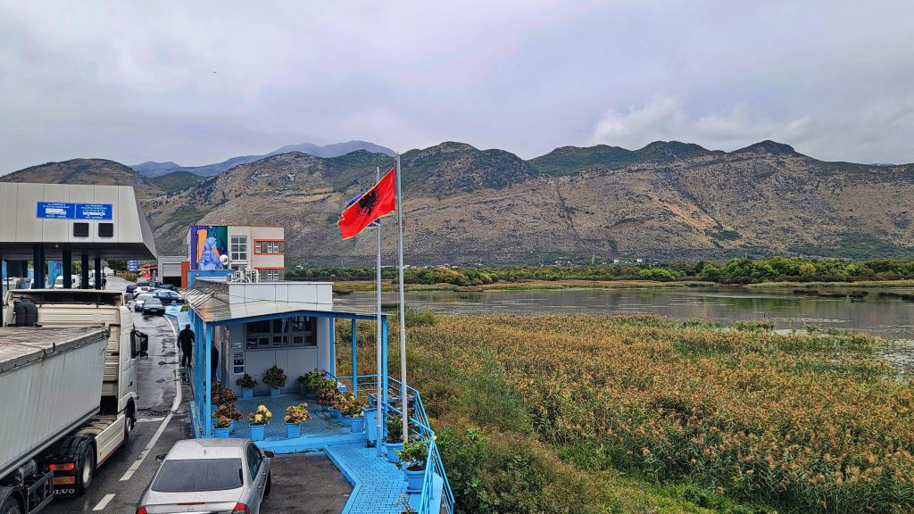 阿尔巴尼亚和黑山的边境口岸,可见斯卡达尔湖及四周环绕的群山,这里已临近黑山首都波德戈里察。