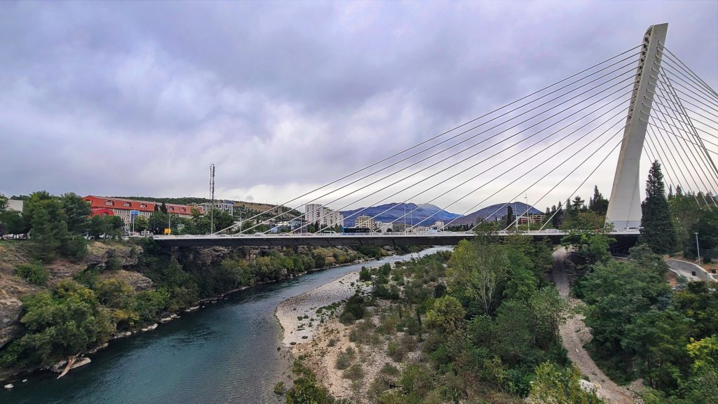横跨波德戈里察的莫拉查河,是城市标志性建筑。白色斜拉结构优雅现代,象征国家新生与发展。