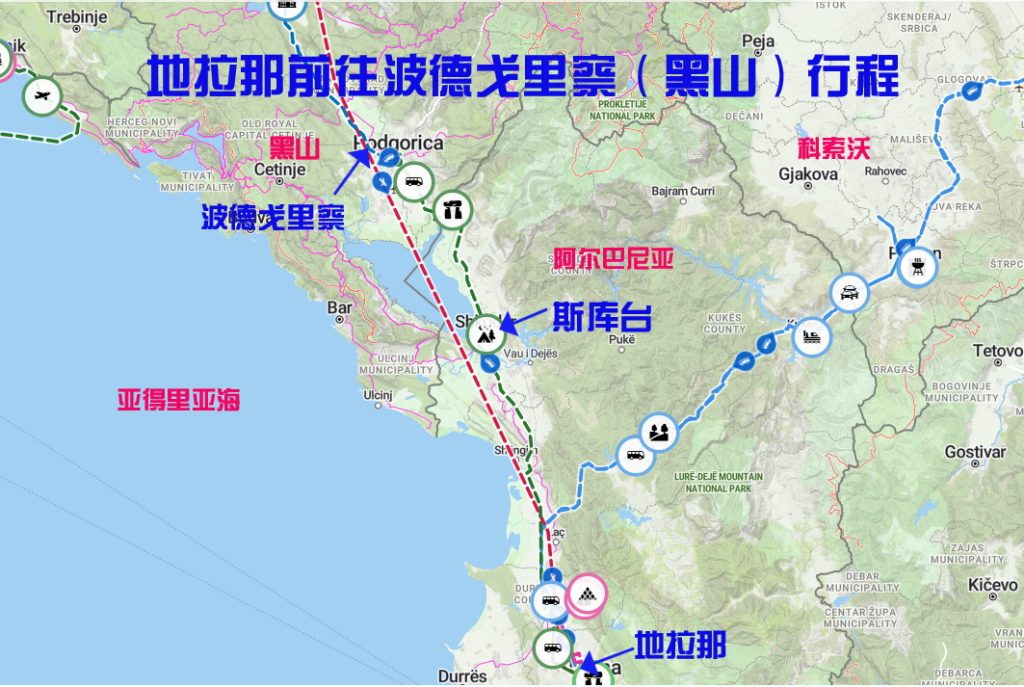我们搭乘长途公交车从地拉那前往波德戈里察,全程3.5小时,单程票价22 欧元。沿途穿越山地与乡村,景色优美。边境通关顺畅,抵达后直达市中心,旅程舒适便捷。