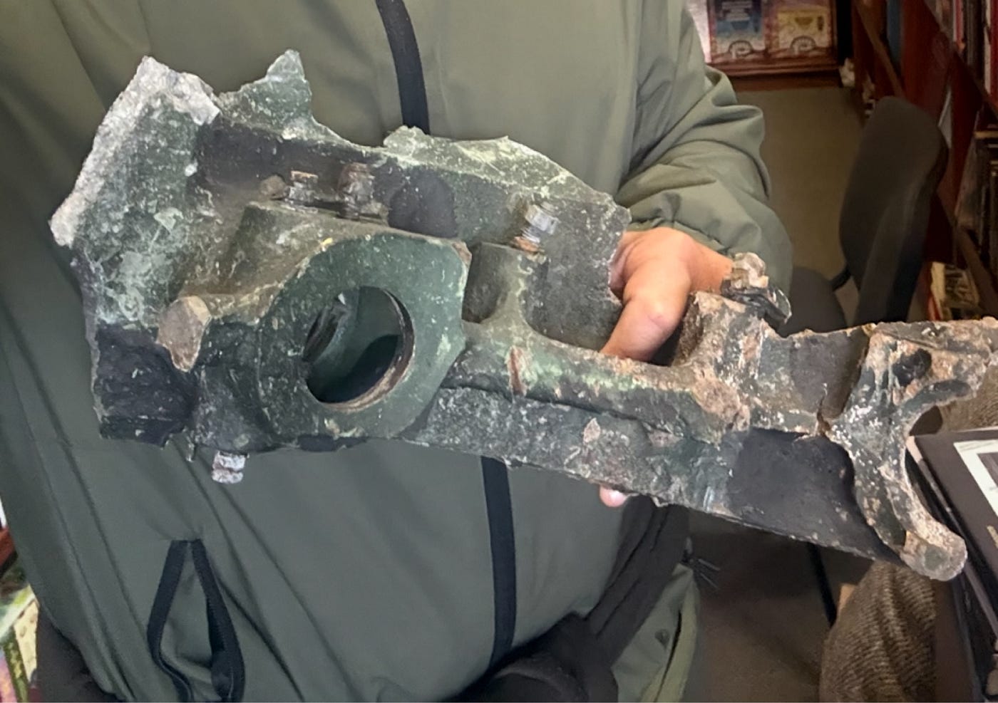 Me showing a piece of Russian Iskander missile during a recent reportage copyrighted photo