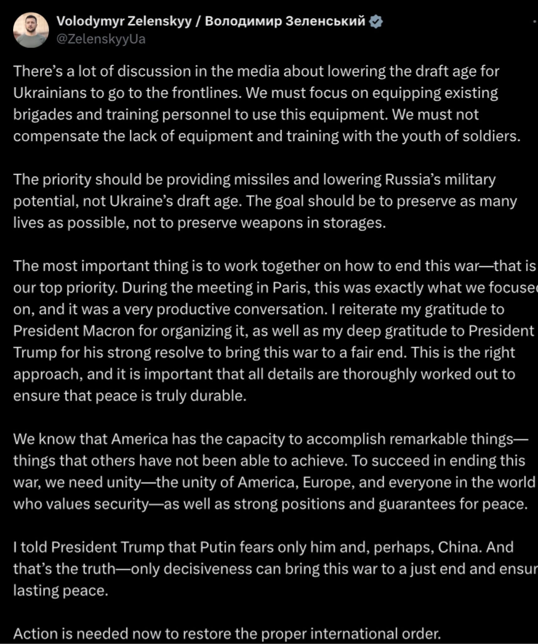 很明显,一个军事强大的乌克兰,在谈判桌上也会拥有更好的机会。那些希望乌克兰好,也就是希望欧洲好的人,应该记住这一点。