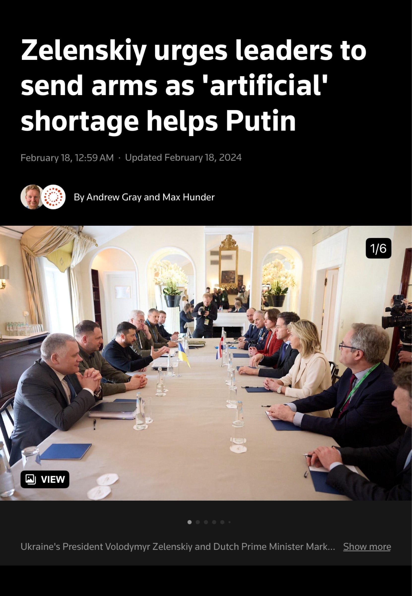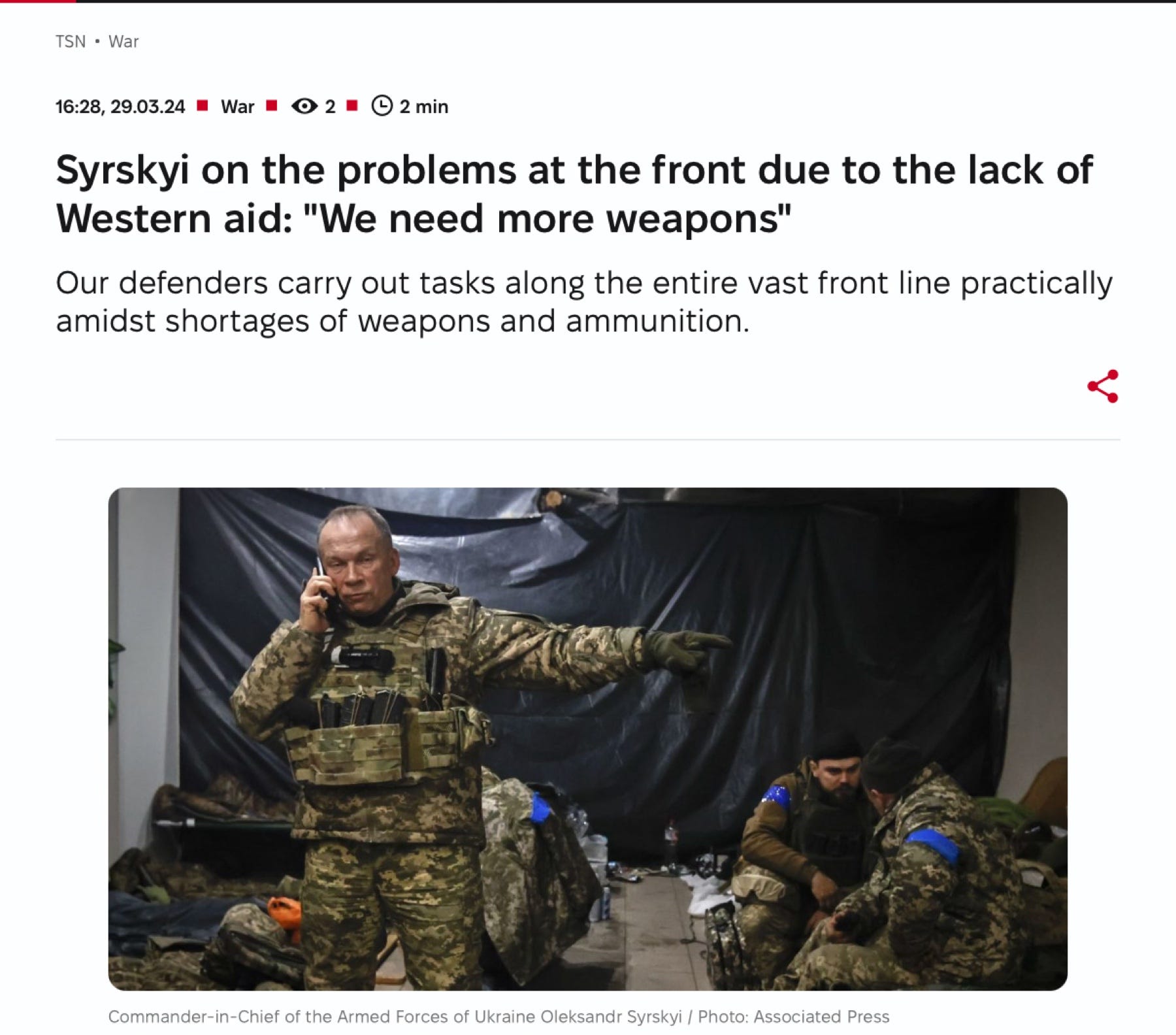 持续多年的屠杀期间乌克兰盟友未能提供与俄军所获供应相当的援助已使局势变得危急。