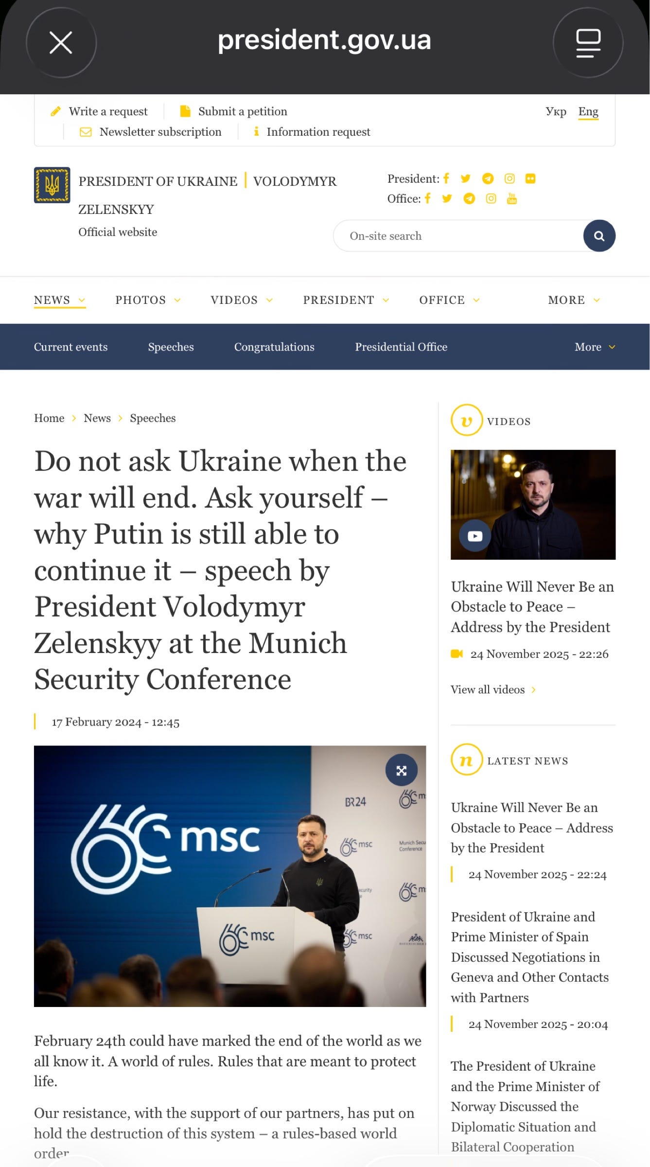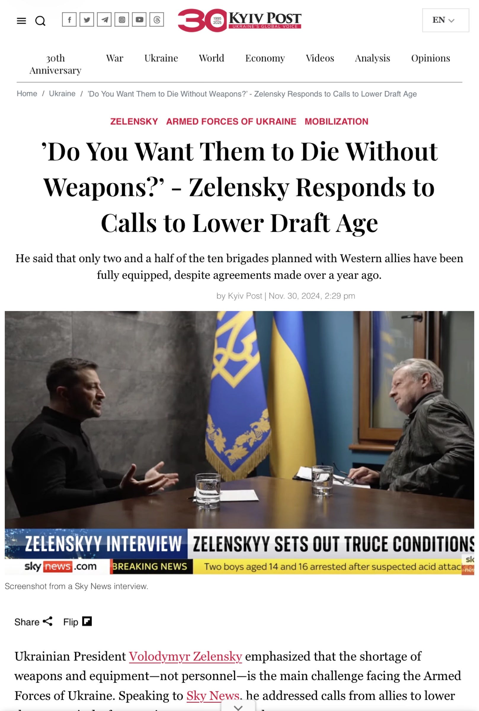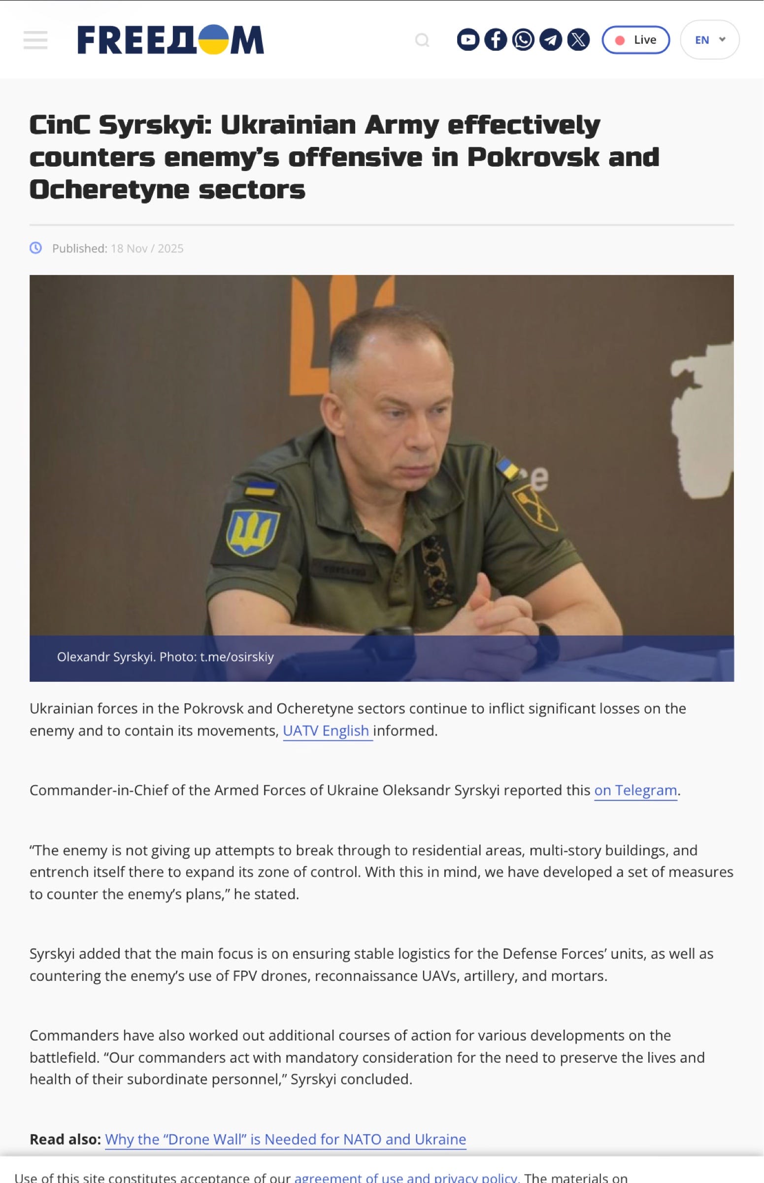 我们有责任从前线发声,尤其是在当前敌对势力也在媒体战线上施压,鼓动欧洲各国政府自此袖手旁观,将问题抛给基辅自己(并因此建议将其动员年龄扩大到18-24岁),并将本应指向那些从各方面攻击、入侵和威胁乌克兰的敌人的指责和侮辱,归咎于乌克兰总统其抵抗运动的领导人以及其武装部队总司令。