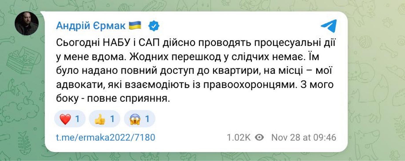Zaporizhzhia As Viktor Orban landed in Moscow, detectives from Ukraines anti-corruption agencies NABU and SAP raided Kyivs government district yesterday to search the office of Andriy Yermak, the head of the Presidents Office.