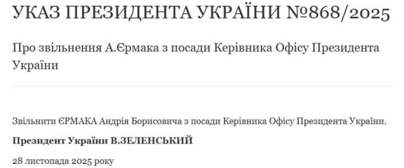 调查仍在进行中,目前尚无人被正式控告。然而,耶尔马克已经辞职。