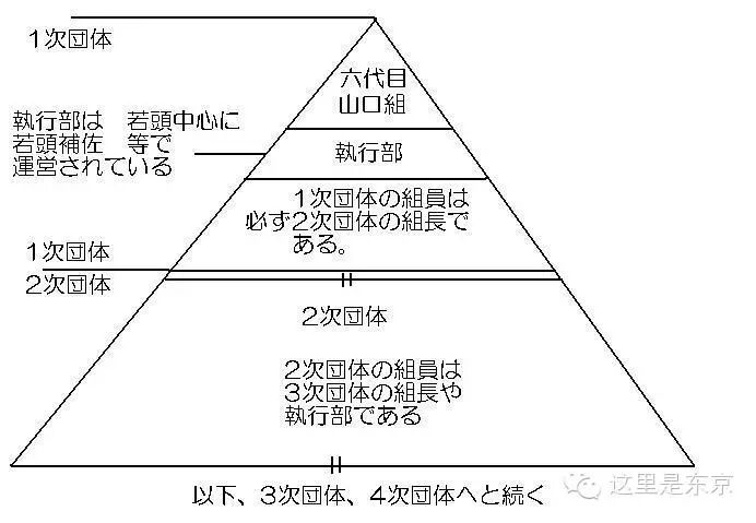 归属山口组的大大小小团体,按上下亲疏等级划分。