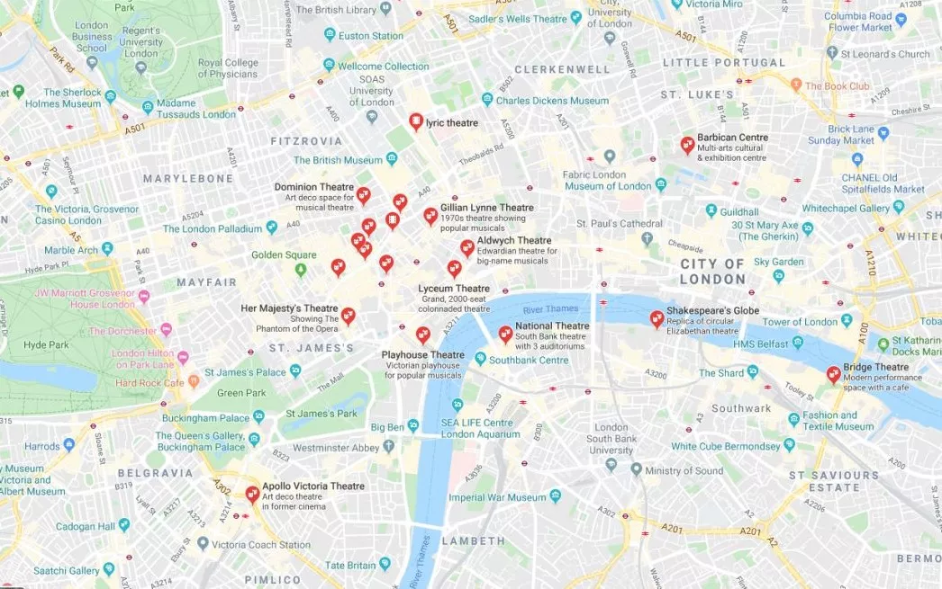 伦敦西区也被称为剧院区,大致是以皮卡迪利广场,托特纳[